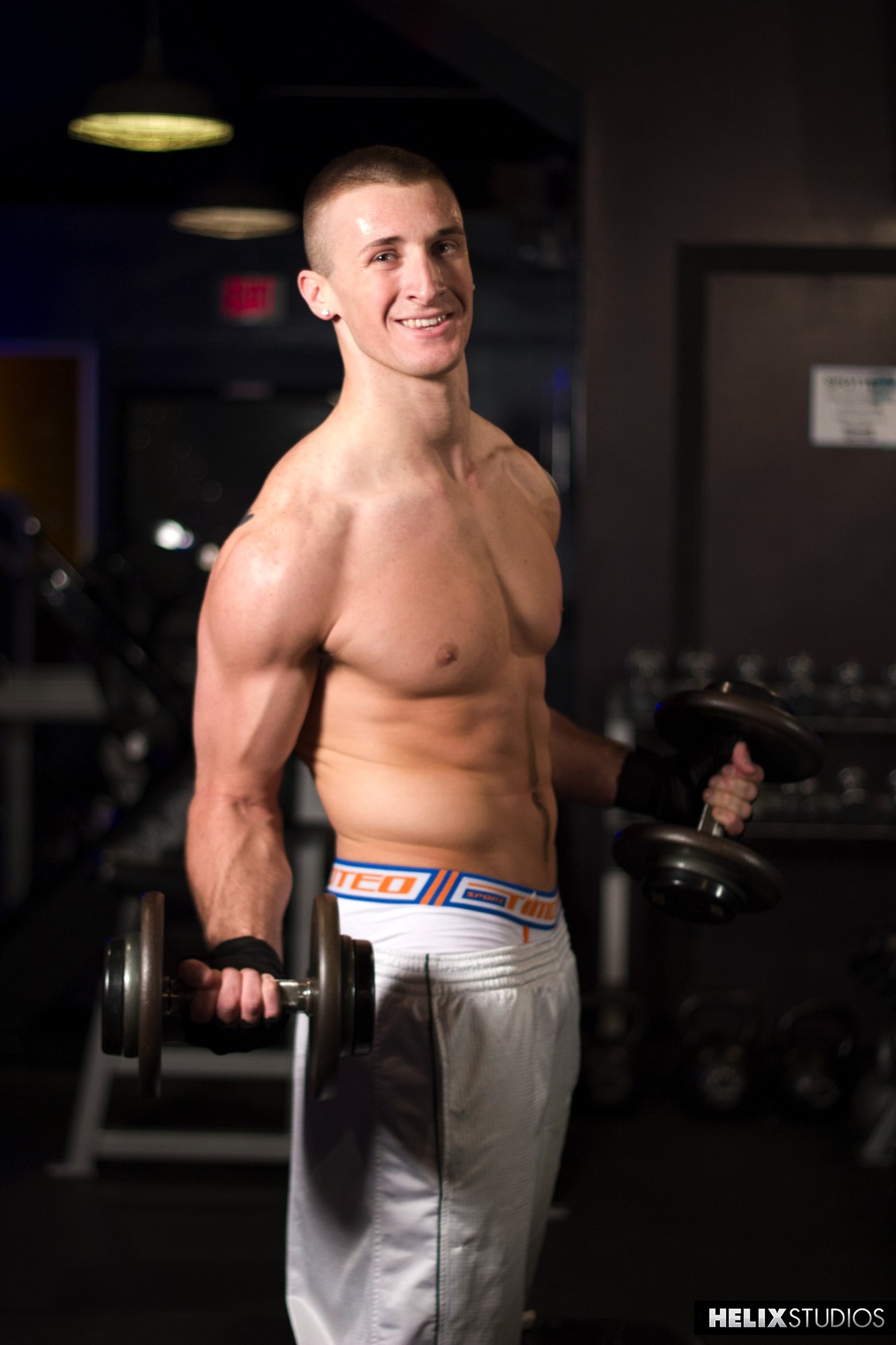 Hot jock Connor Kline is back at the gym working out and showing off his bulging muscles