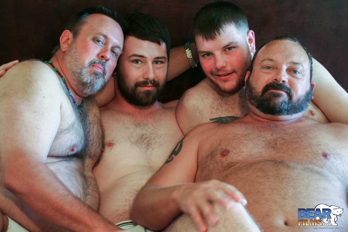 Four diverse bears take each other on at a wet and sweaty pump and cum dump