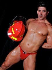 Firefighter Sebastian Stone shows off his ass and body