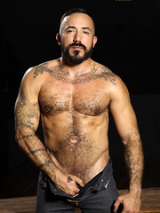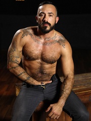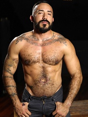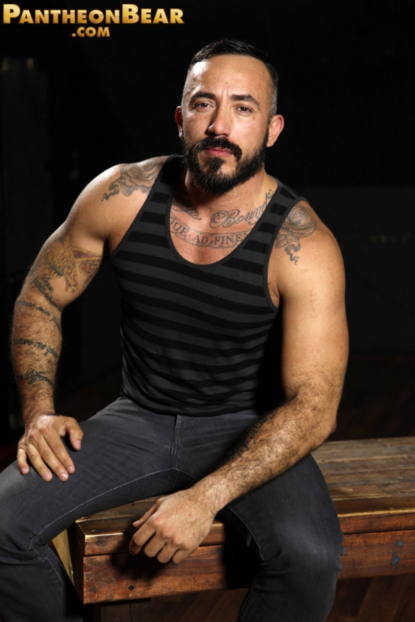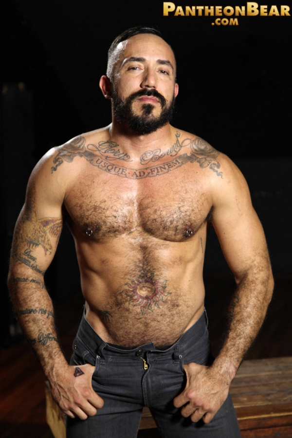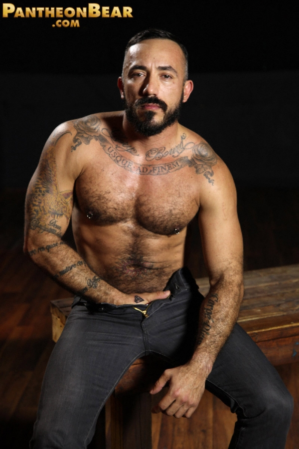 Muscle bear Alessio Romero is so damn hot you will break a sweat just looking at his muscular hairy body