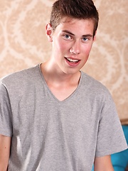 Tall twink Matt Johnson busts a nut all over his chest.