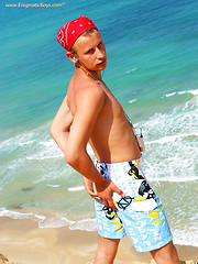 Straight boy Sander solo posing on the beach