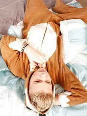 Cute twink Alex Silvers stroking his thick cock.