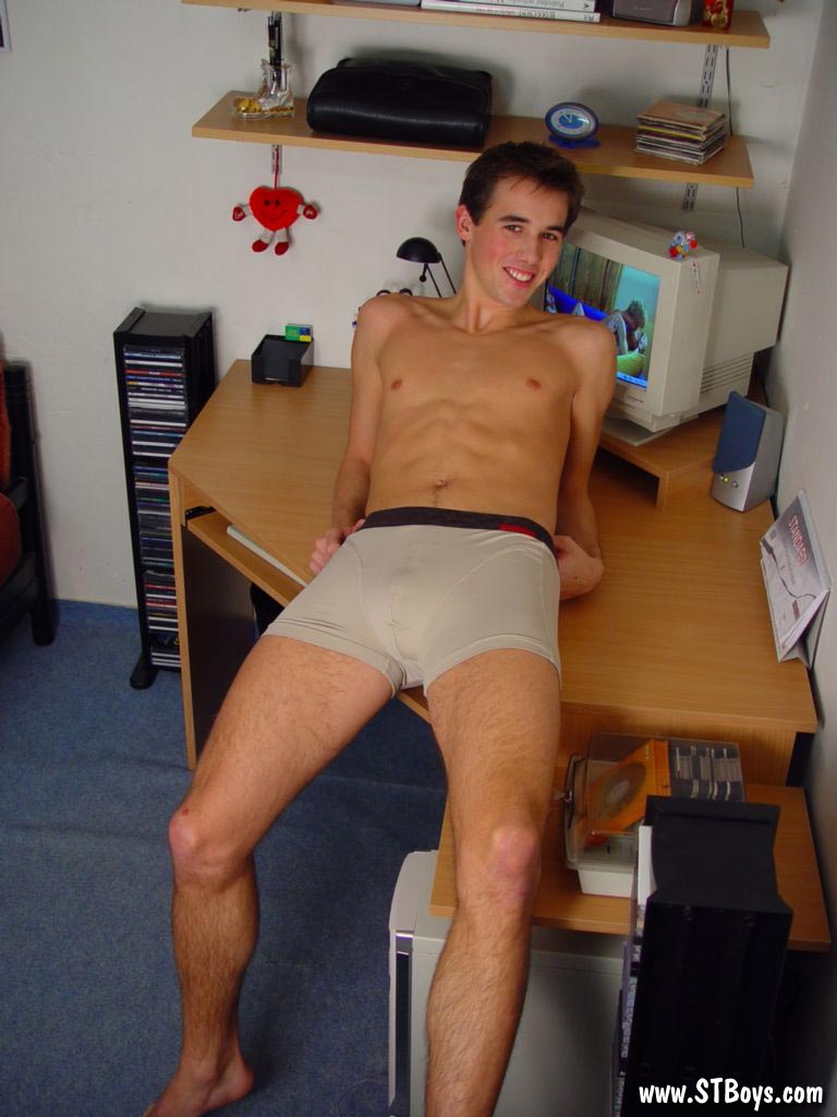 Sporty twink poses with his sexy underpants off