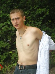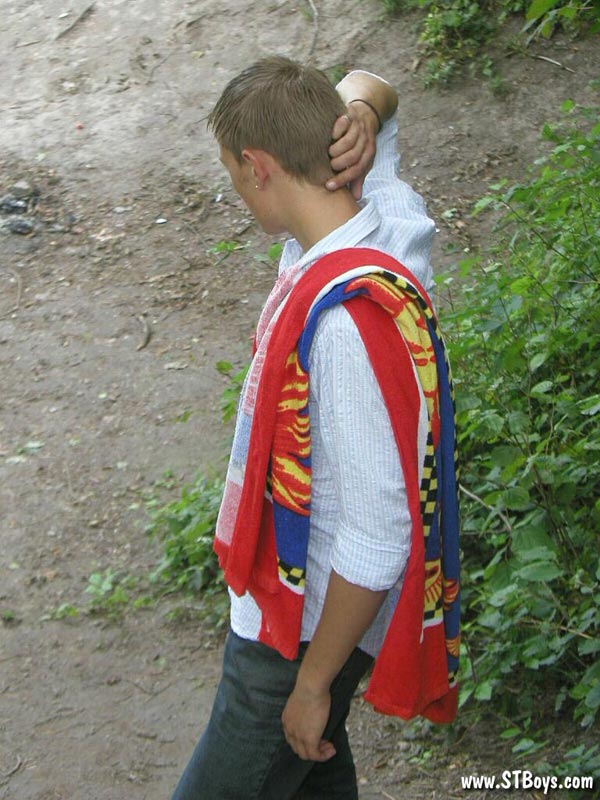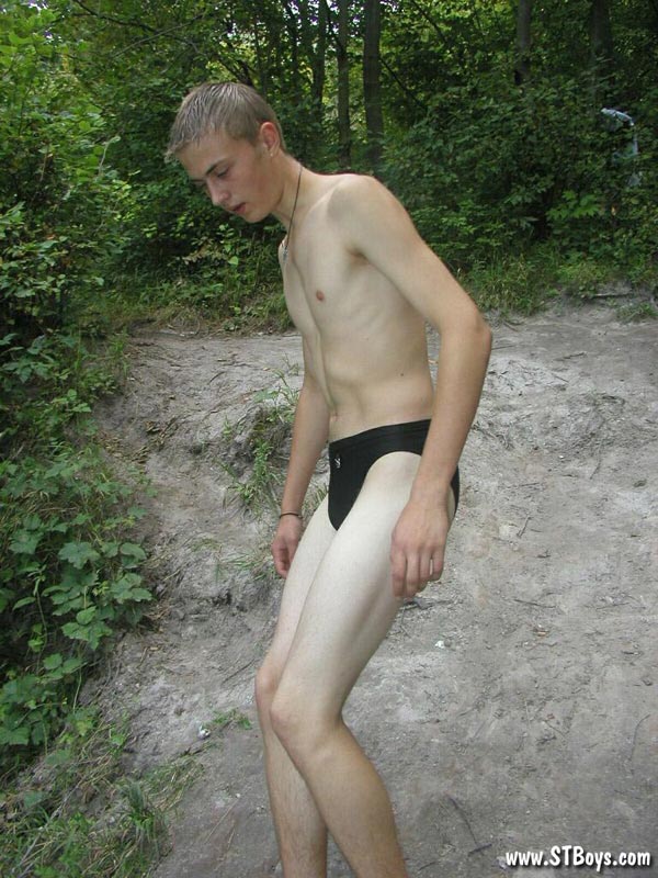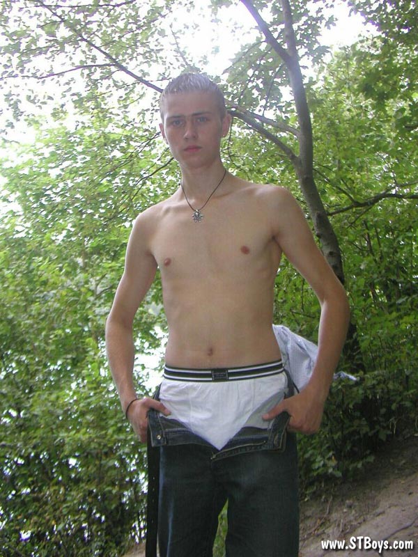Handsome twink guy posing for the camera outdoors