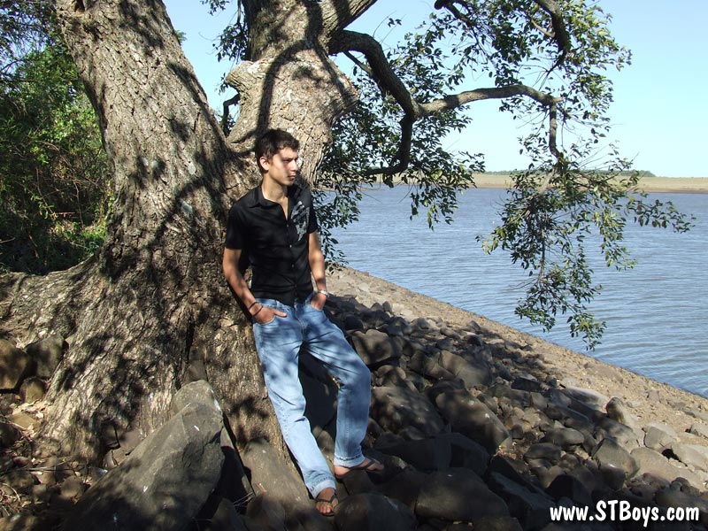Handsome twink guy posing for the camera outdoors