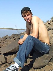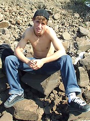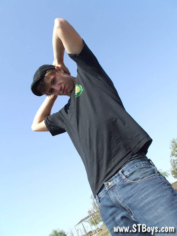 Handsome twink guy posing for the camera outdoors