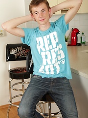 Sexy Tommy Marco masturbating on the kitchen counter.
