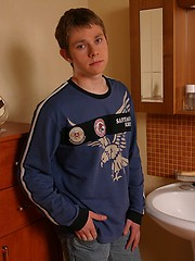 Little teen boy plays with his big cock