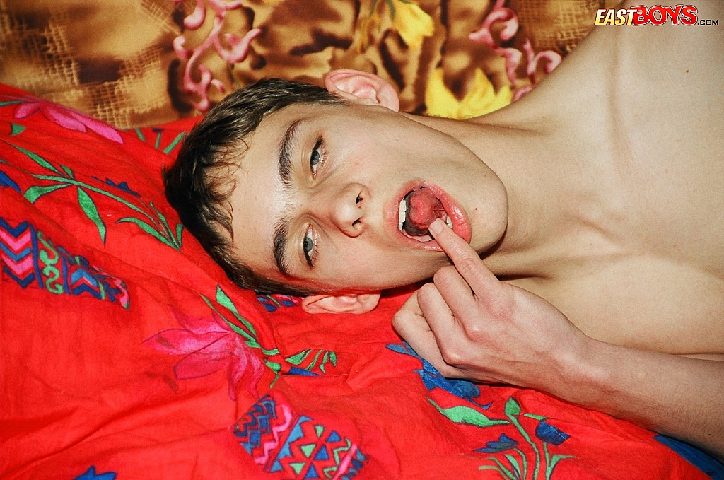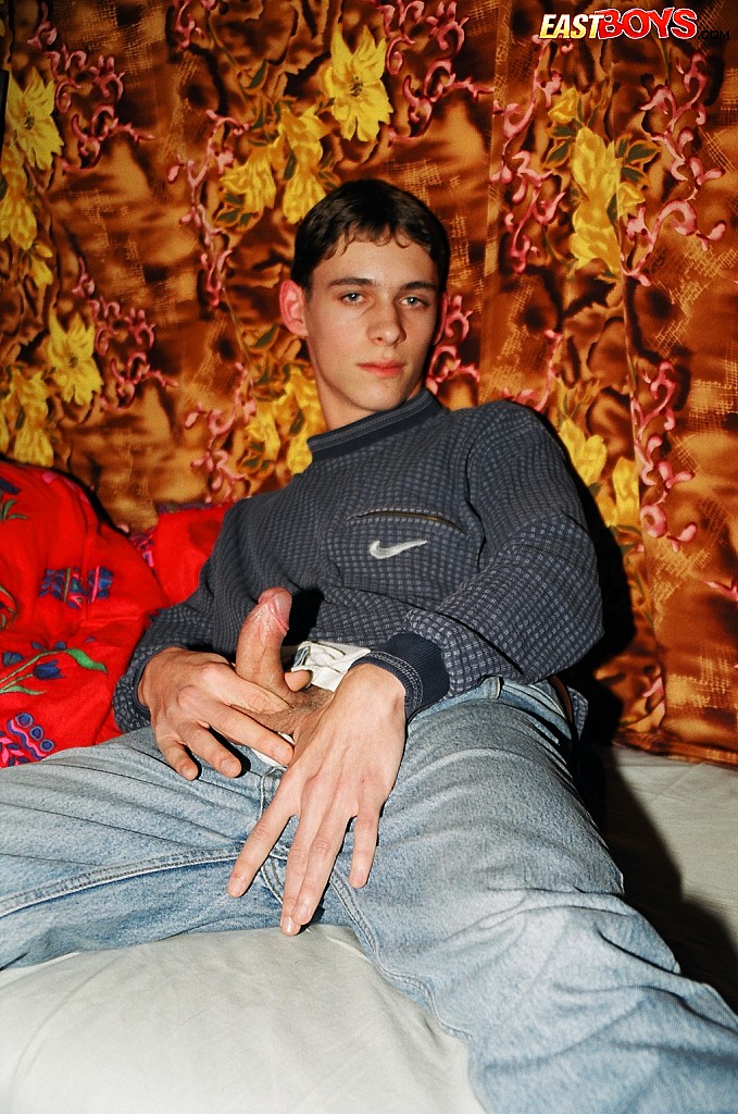 Russian twink jacking off cock and load his cum