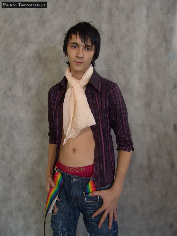 Delicious dark-haired twink sporting tough Soviet charm and blameless body
