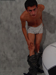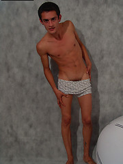 Skinny twink Jon bares the meaty love rod hiding under his baggy boxers