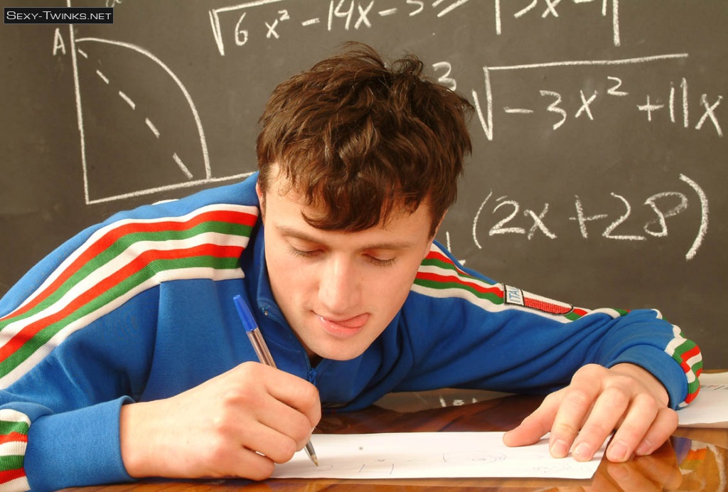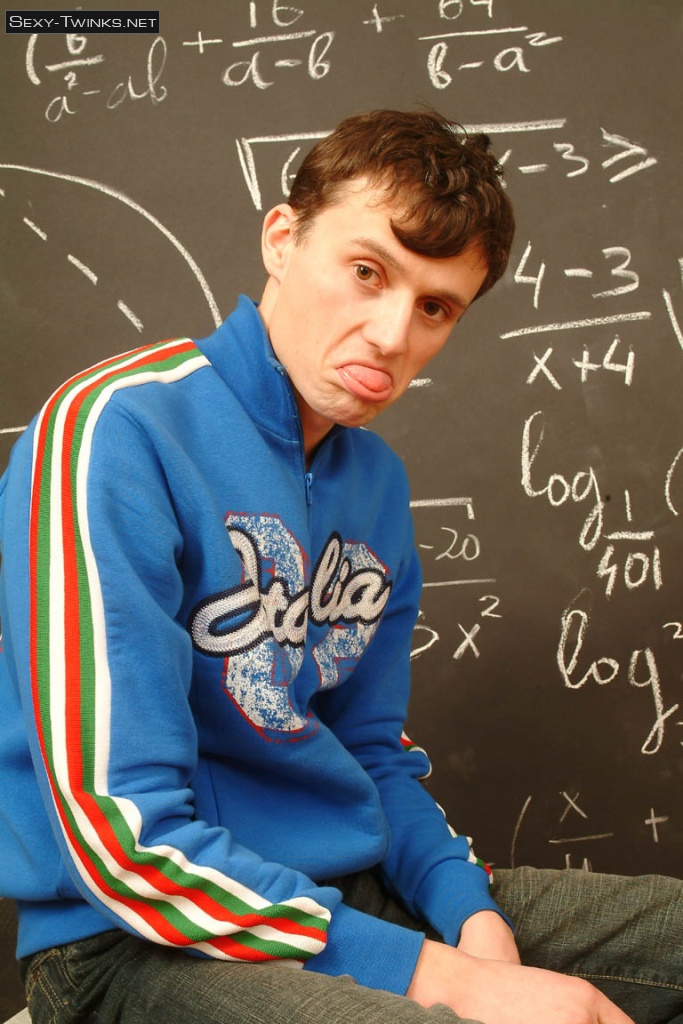Boy model Dimax jerking off in the classroom