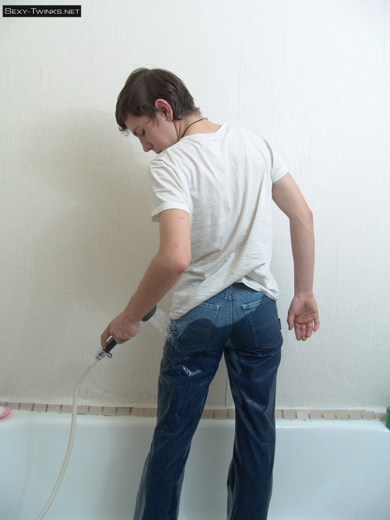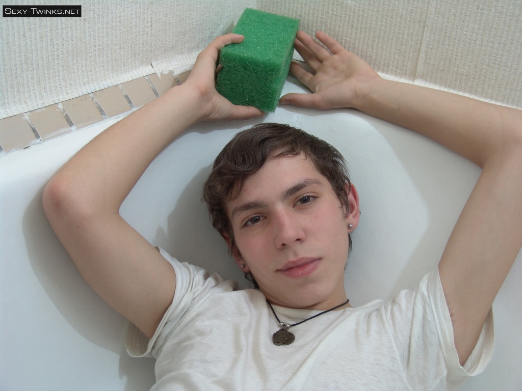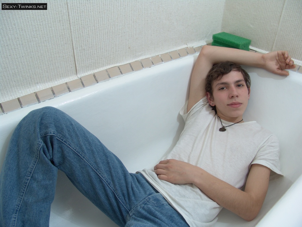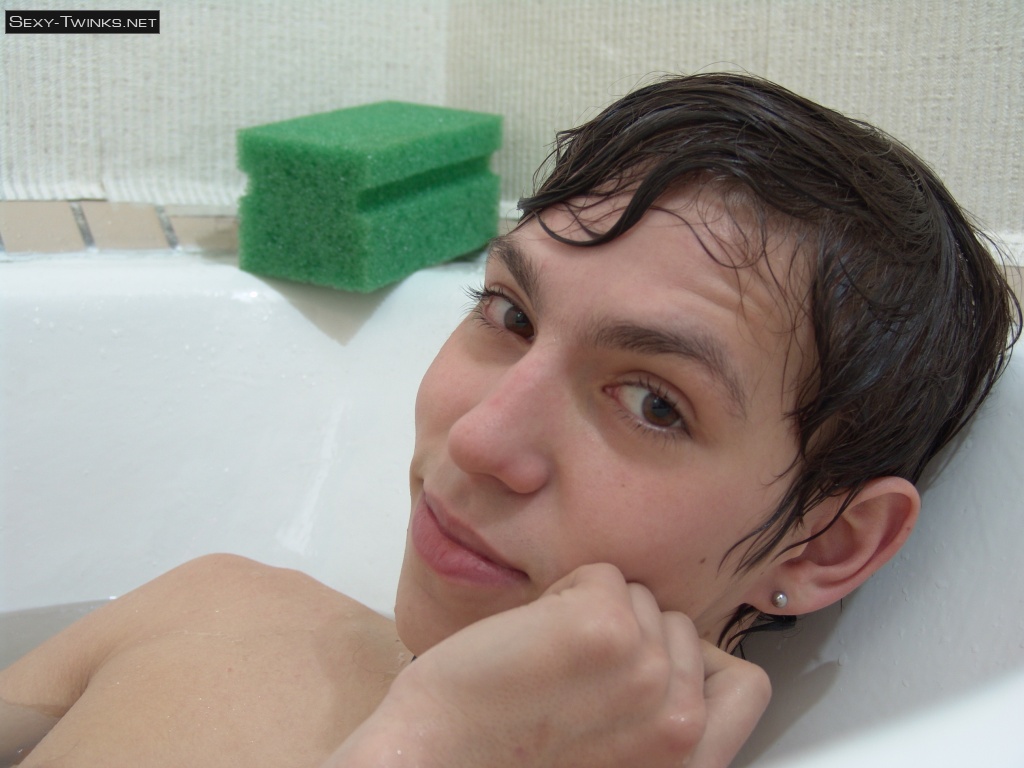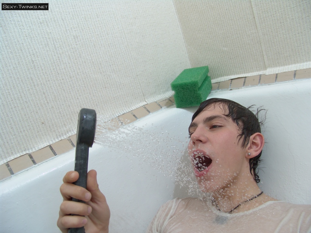 Cute teen boy Kish plays in the shower