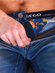 Rosy cheek twink Pat Drone stroking his uncut cock.