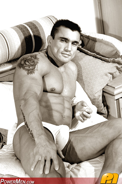 Competitive bodybuilder Jeff Fleming showing his hard dick