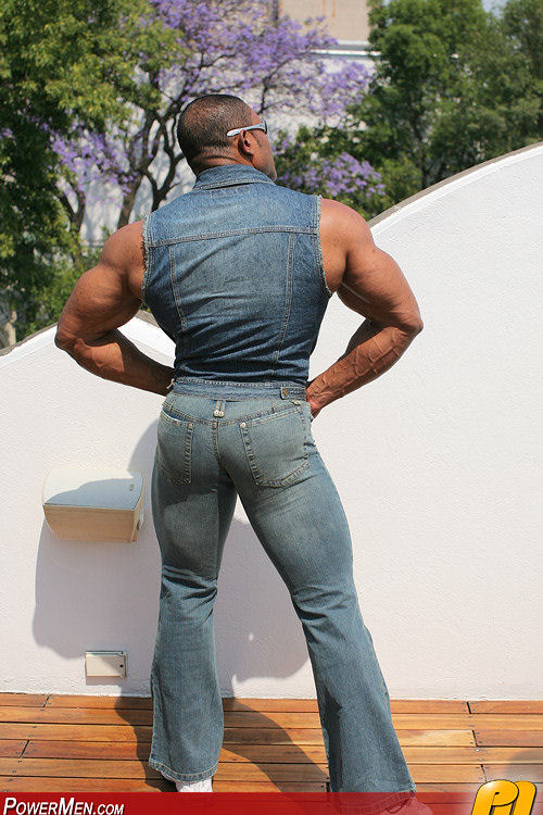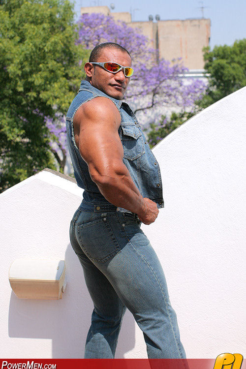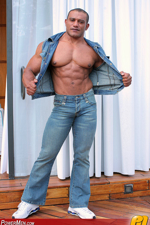 Big bodybuilder Pedros Marcos showing his brown uncut dick