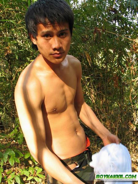 Handsome Thai guy gets naked in the wild