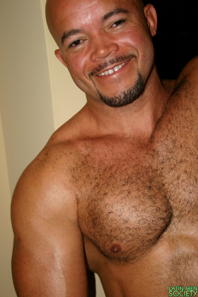 Bald daddy showing his muscled latin body