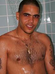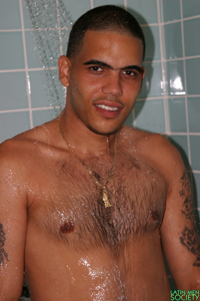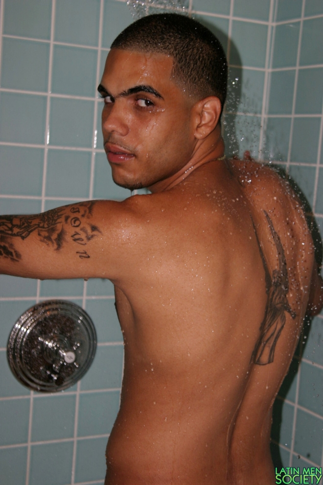 Naked latin dude jerks off his penis