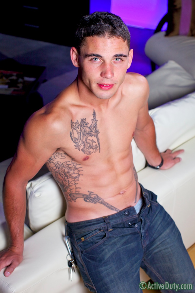 Tattoed college dude shows his nude body