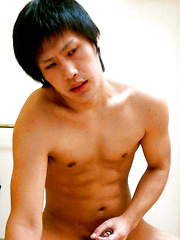 Japanese teen boy stroking own penis