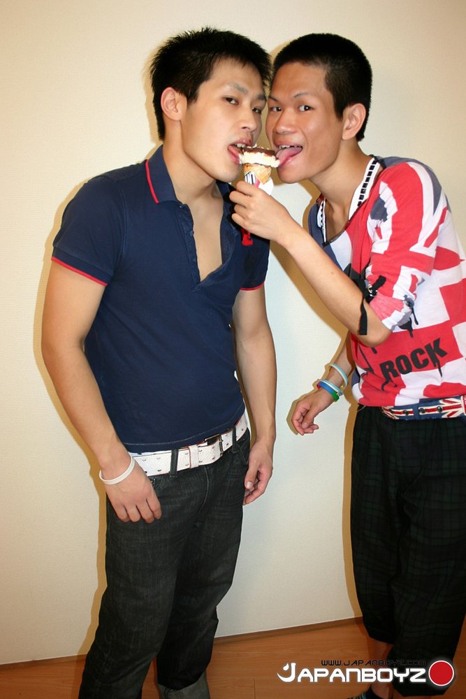 Muscular Japanese boy Koki bumps into a clumsy twink named Kojima