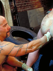 Shaved fisting bottom Spike arrives on time for his lube job with power-top Max Stone