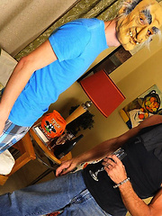 Innocent slim twink riding daddy cock