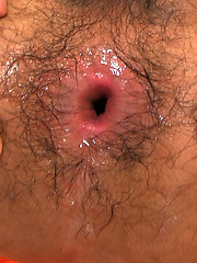 Ruy goes for the thicker cucumber and fuck his hairy Asian ass