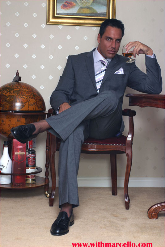 Hunky office guy relaxing after hard work day