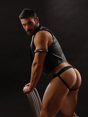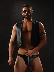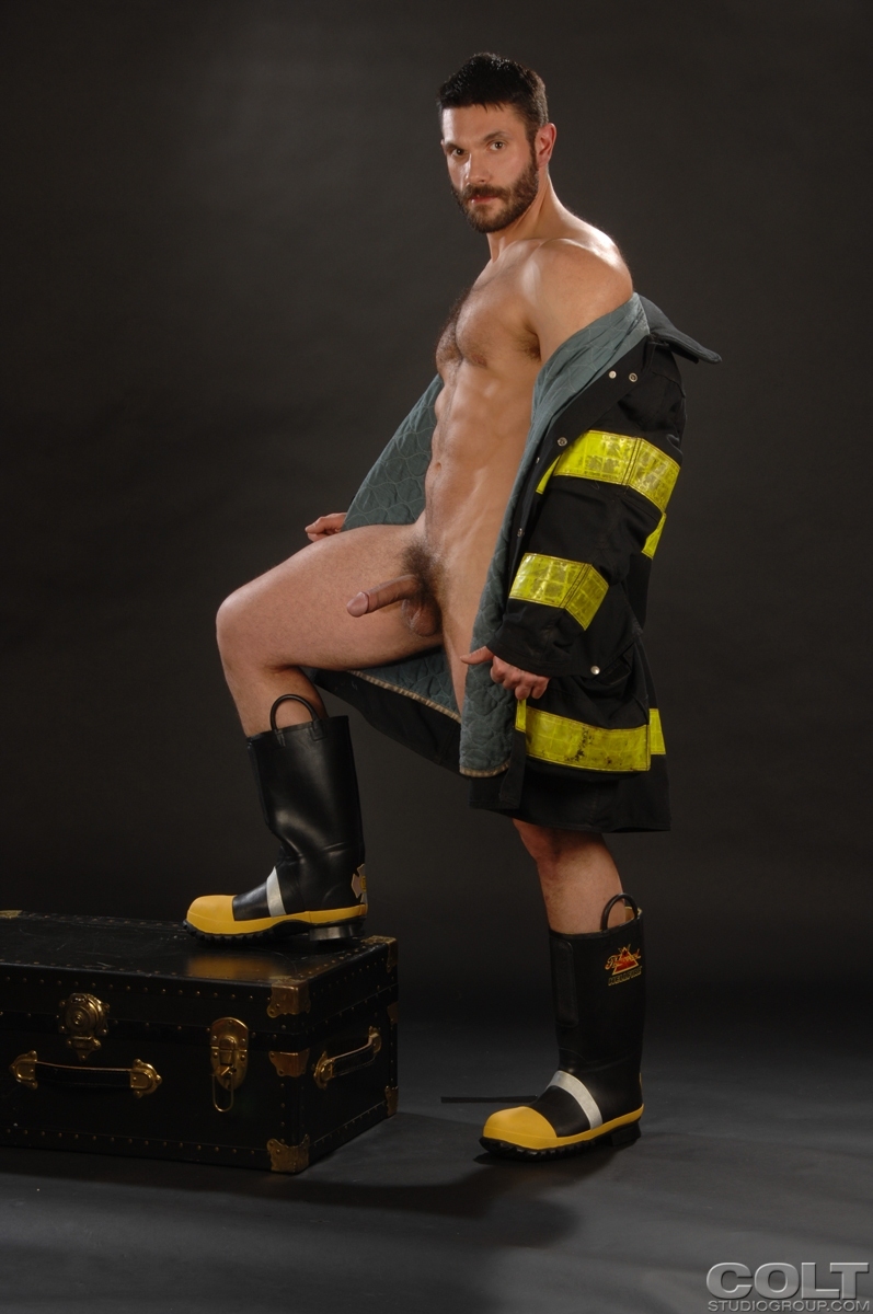 Big fireman shows his muscle naked body