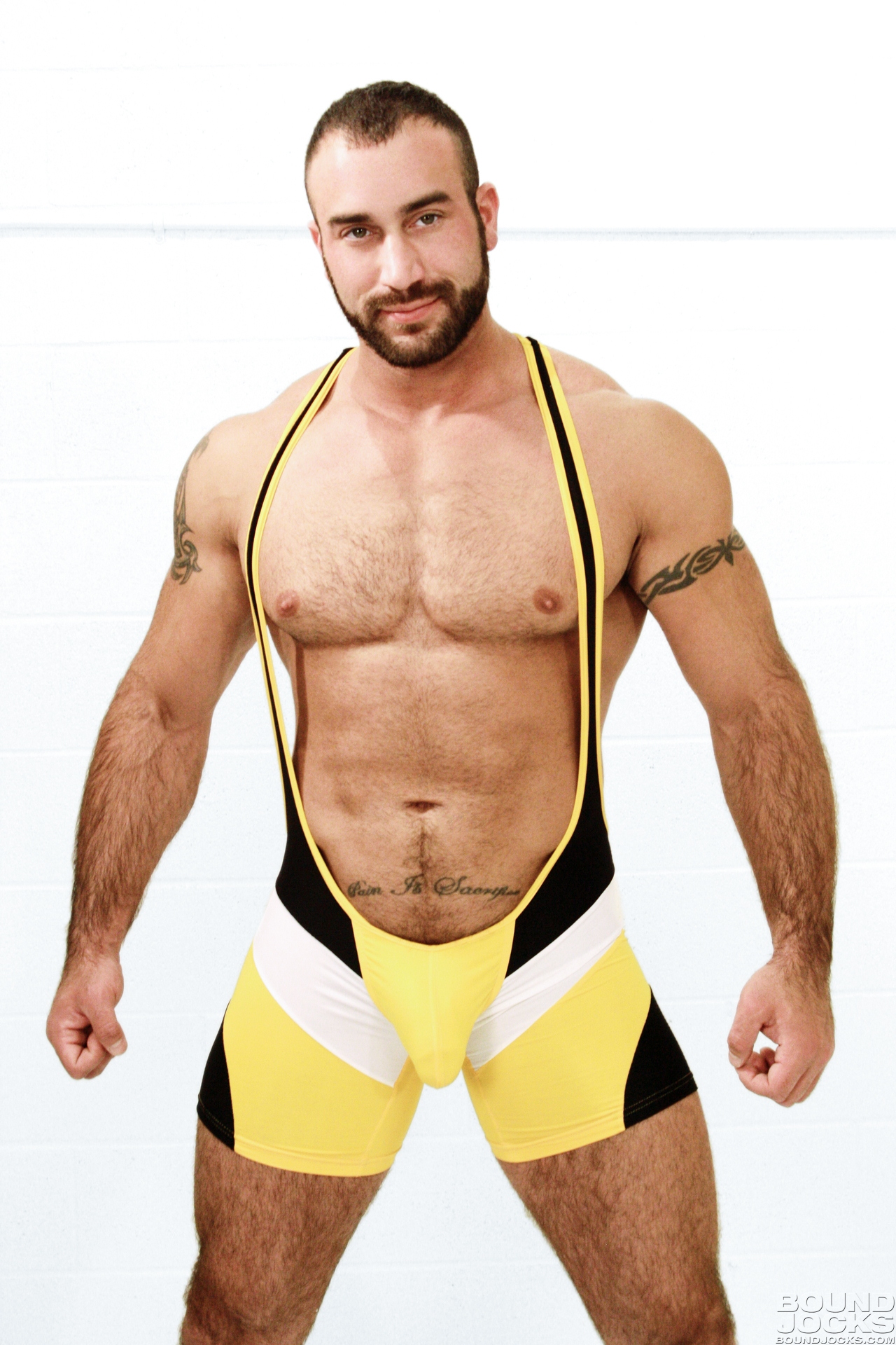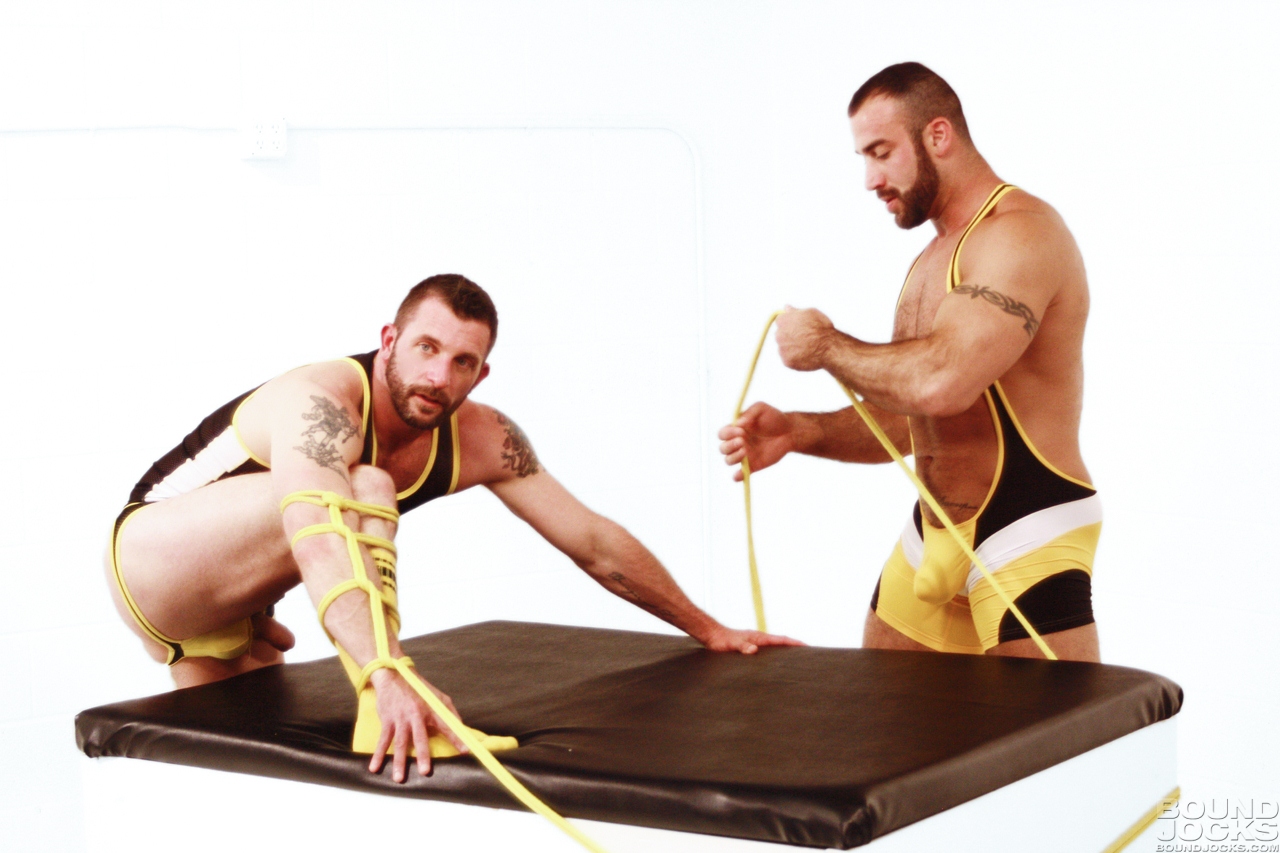 Muscle daddy hunks in spandex suits sucking and fucking each other