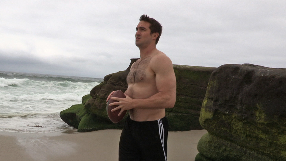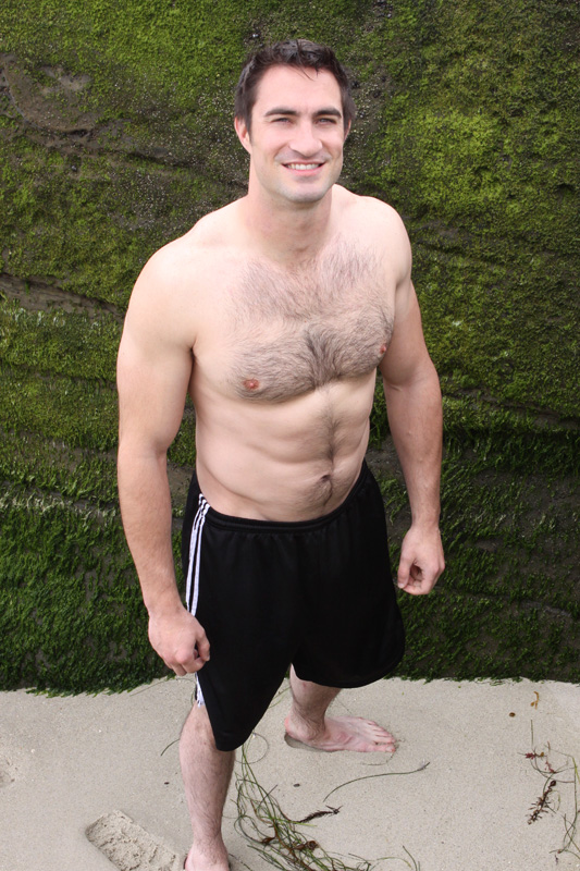 Hairy rugby player solo masturbation