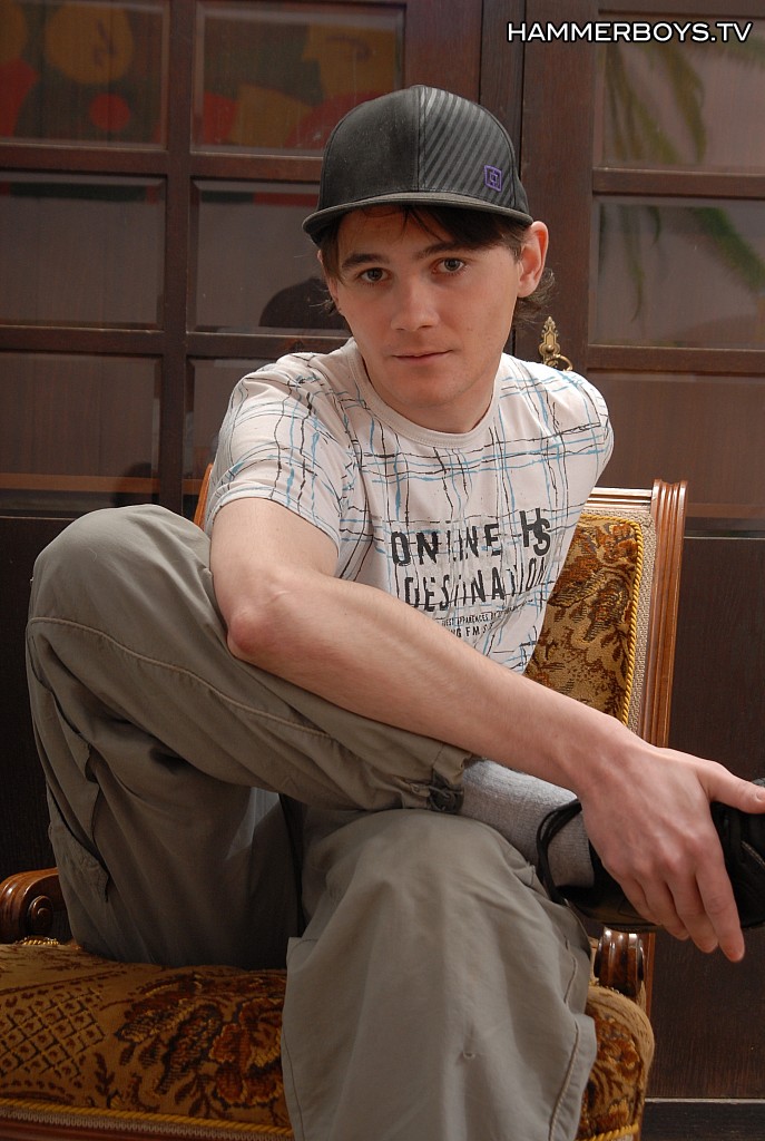 Cute gay boy stroking his sweet uncut dick