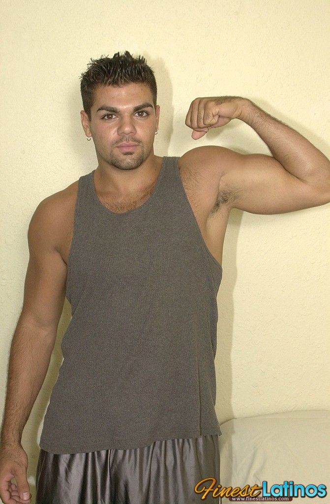Beefy latin bear strokes his dick