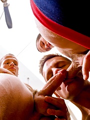 Threesome with athletic guys