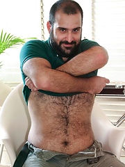 Italian bear Urs Milano shows off his sexy hairy chest and furry hole in this red hot Spanish photo shoot