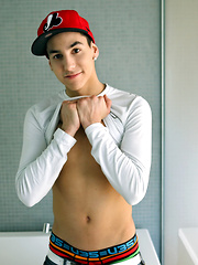 Joey jerking his big boner on the edge of the bathtub