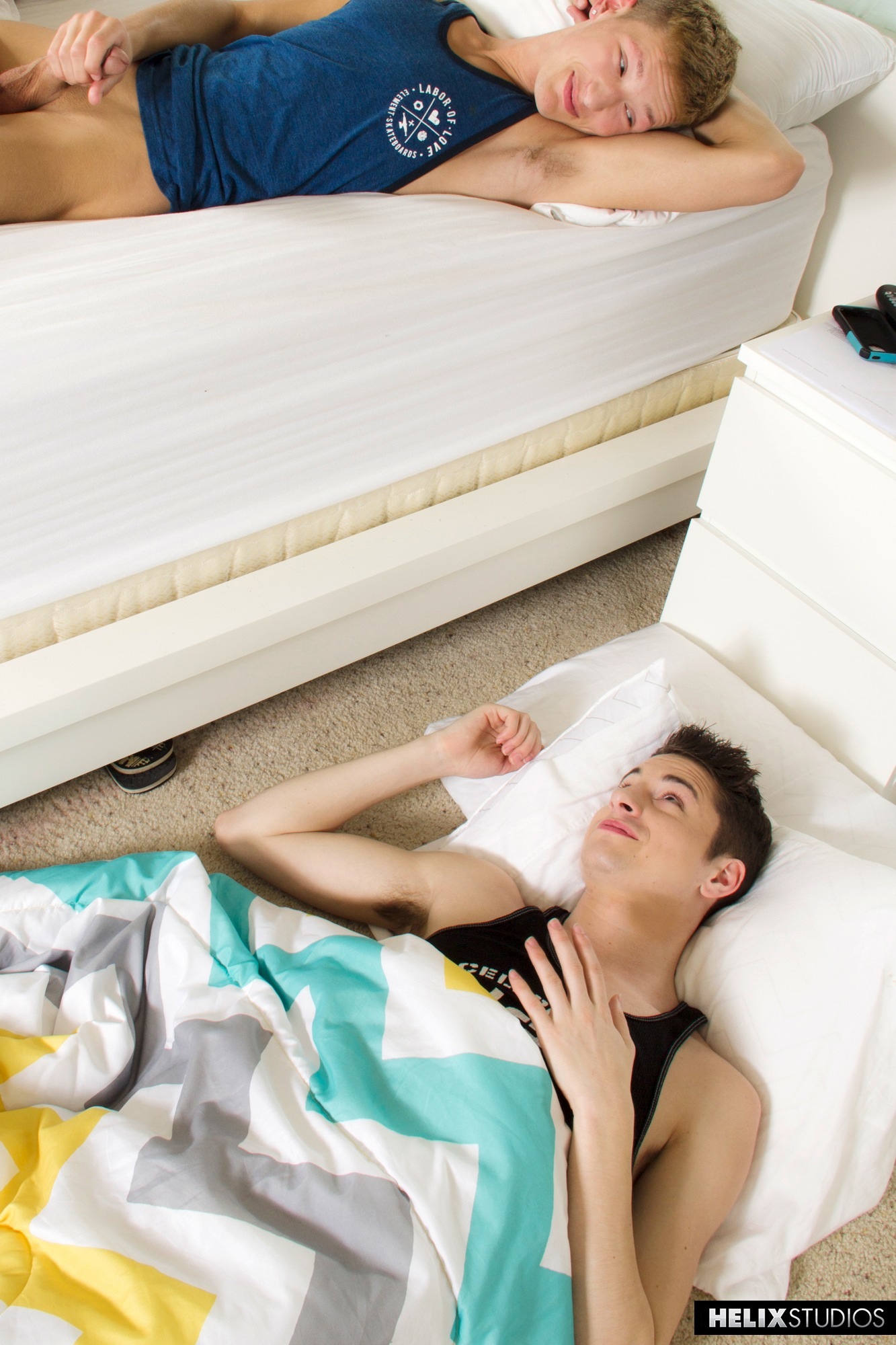Blond twink Casey Tanner awakens to find hunky Alex Vaara passed out on his floor