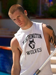 Muscular pool boy Connor Kline rubs down the hot stud Alex Vaara